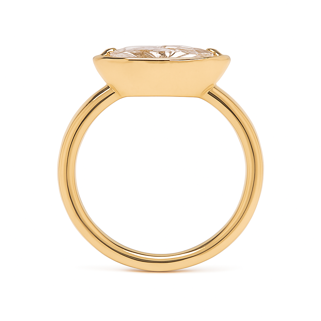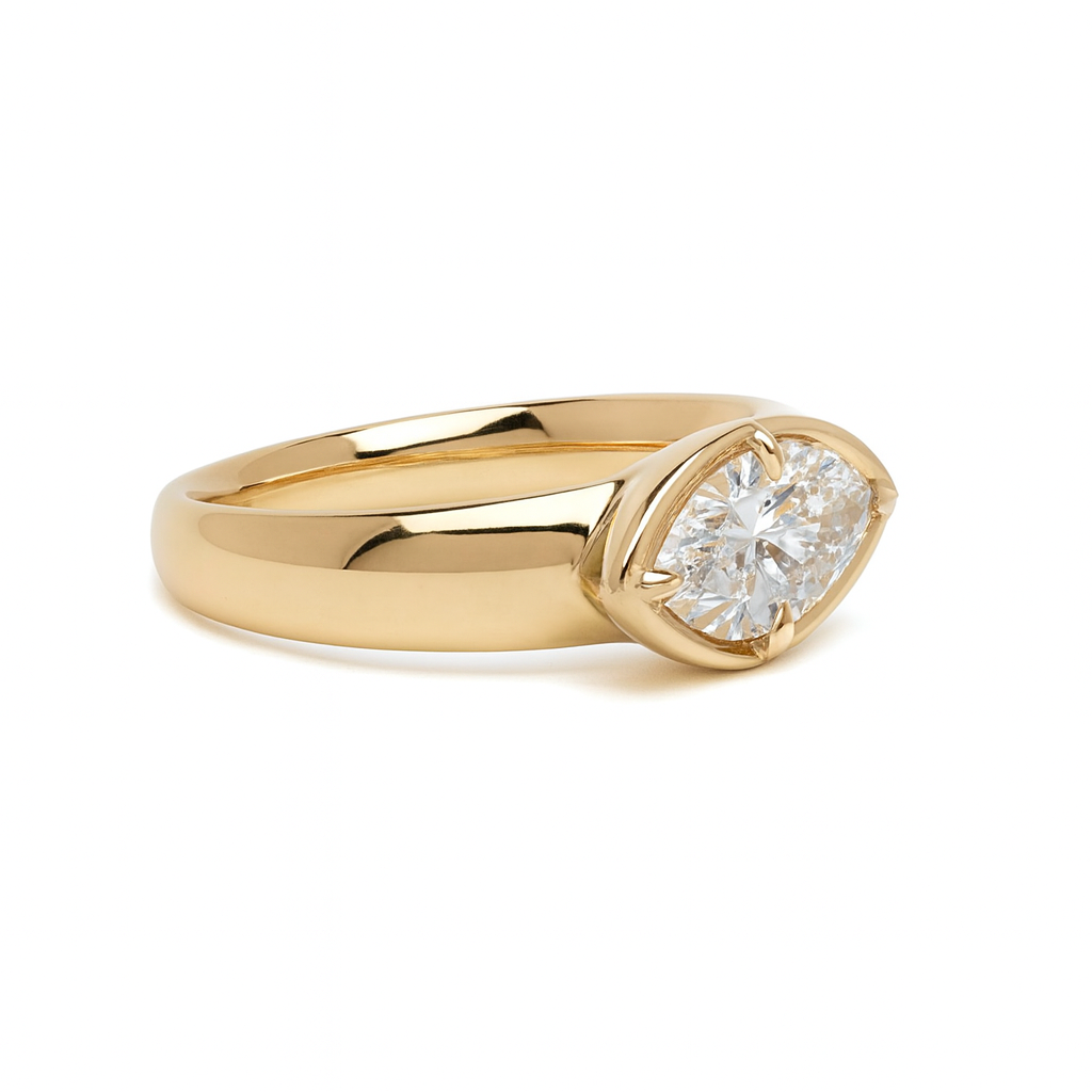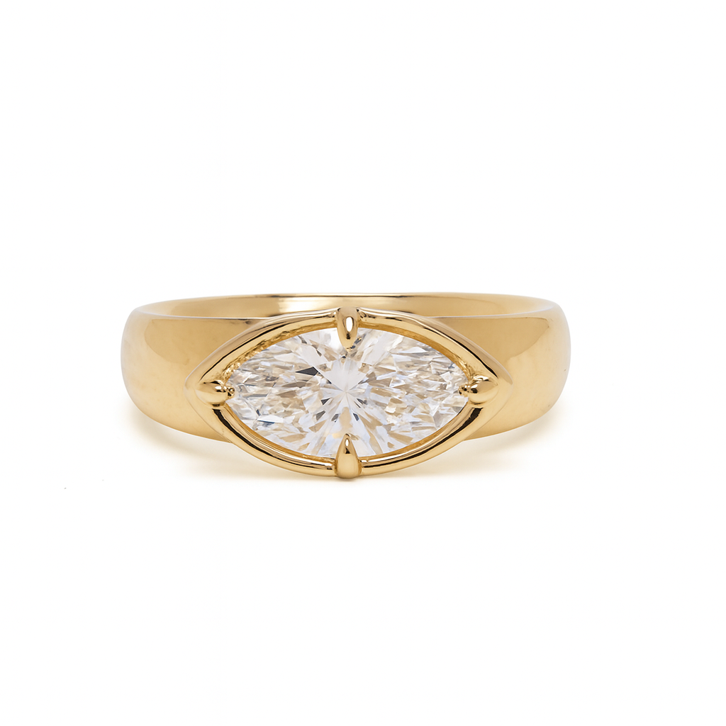 The Ella Ring features a captivating Moissanite marquise center stone